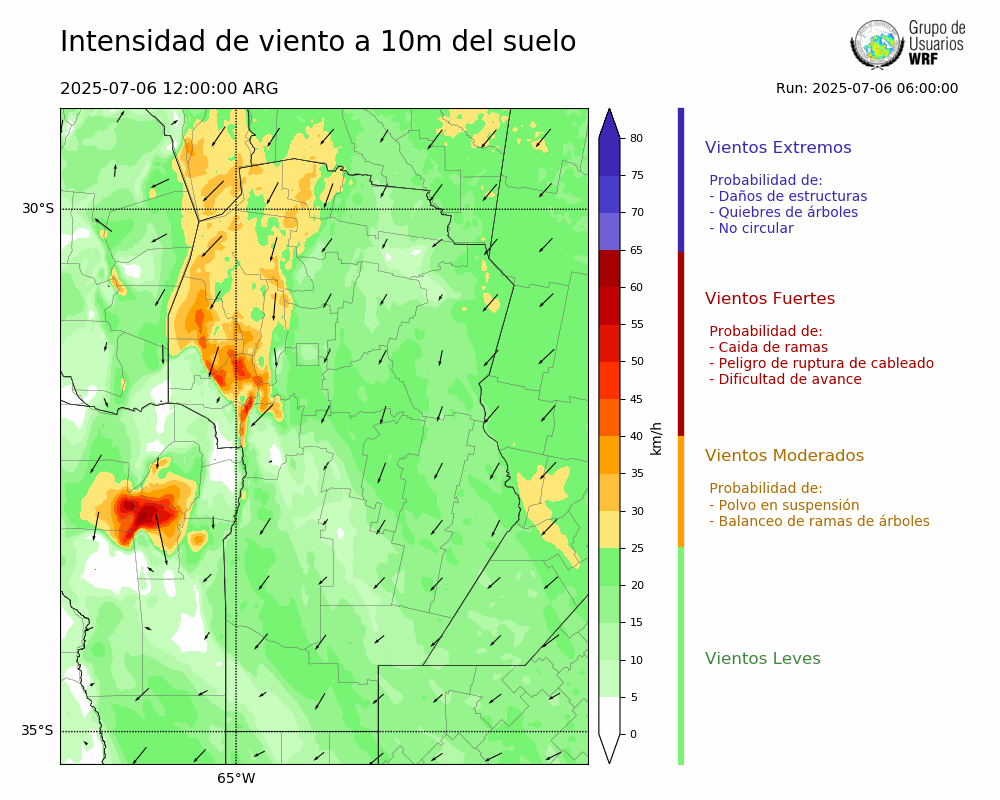 • Intensidad máxima: 9.87 km/h (08/07/2025 04hs.)