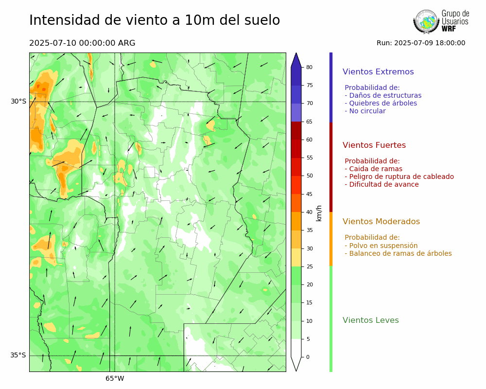 • Intensidad máxima: 10.15 km/h (10/07/2025 05hs.)