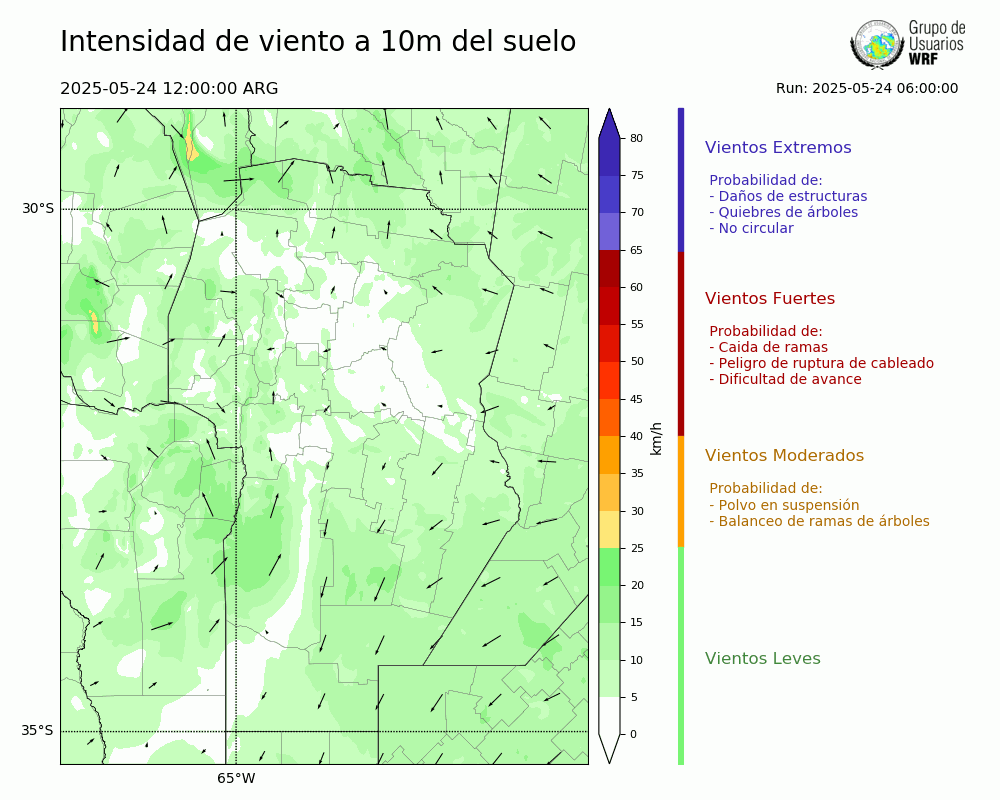 • Intensidad máxima: 6.86 km/h (24/05/2025 23hs.)