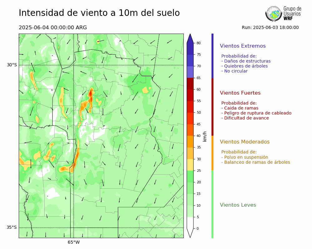 • Intensidad máxima: 2.77 km/h (04/06/2025 00hs.)
