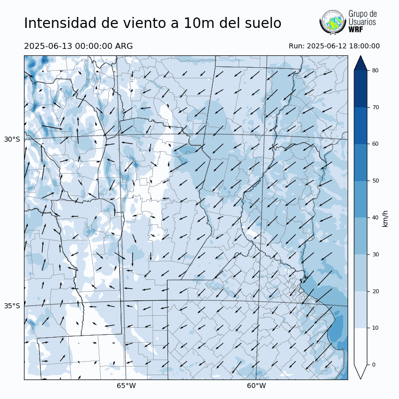 • Intensidad máxima: 13.76 km/h (15/06/2025 03hs.)