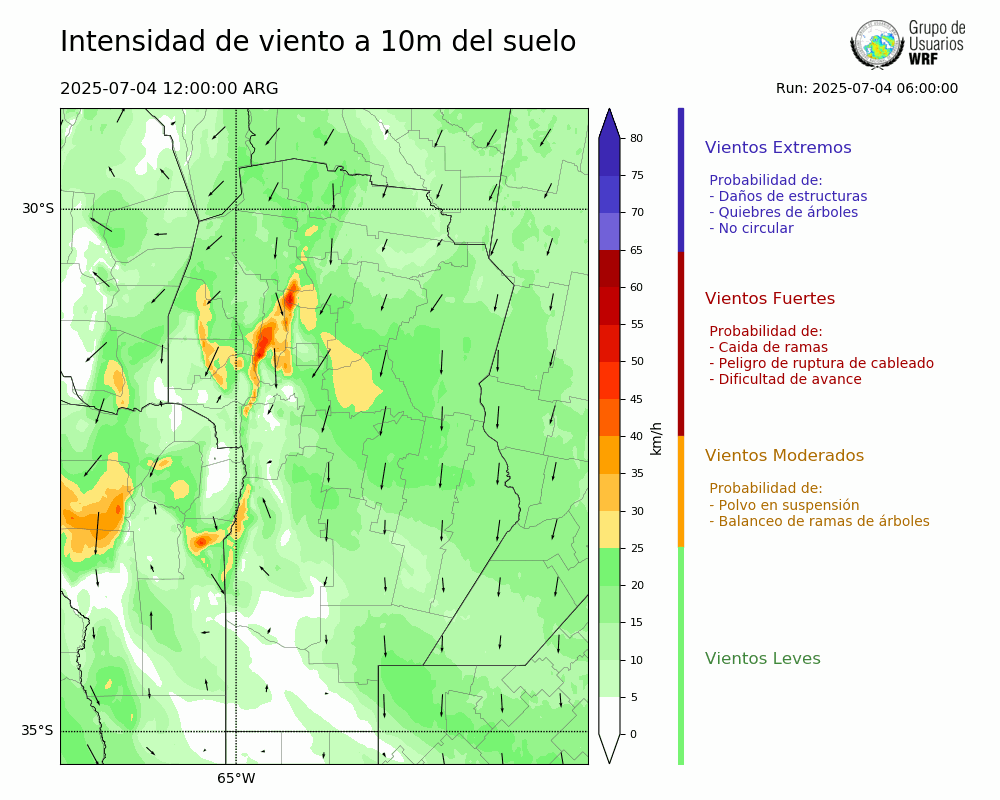 • Intensidad máxima: 12.87 km/h (04/07/2025 14hs.)