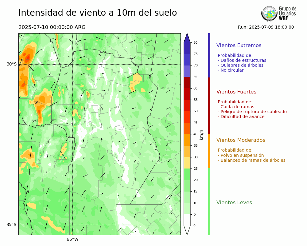 • Intensidad máxima: 9.80 km/h (12/07/2025 02hs.)