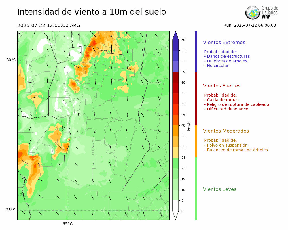 • Intensidad máxima: 10.72 km/h (22/07/2025 18hs.)