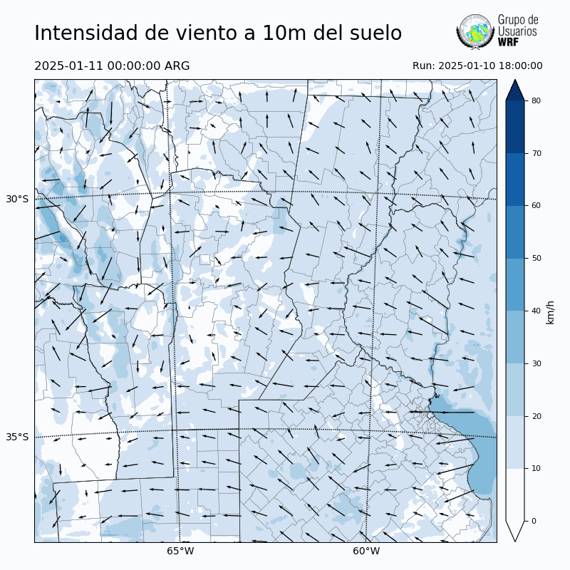 • Intensidad máxima: 12.22 km/h (11/01/2025 04hs.)