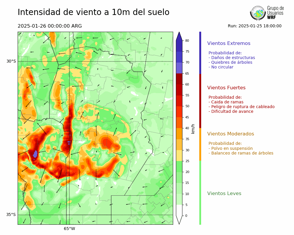 • Intensidad máxima: 10.63 km/h (27/01/2025 20hs.)