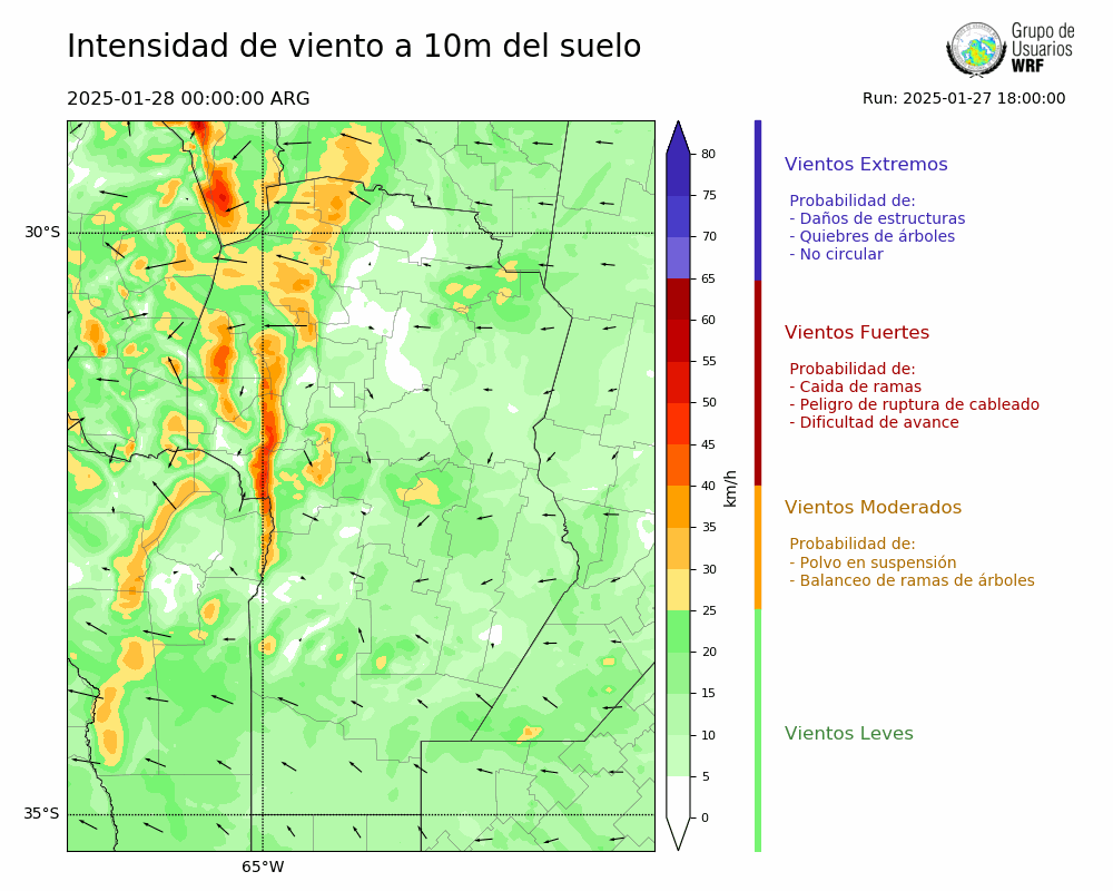 • Intensidad máxima: 27.66 km/h (28/01/2025 06hs.)