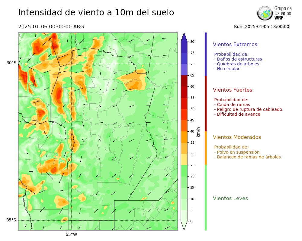 • Intensidad máxima: 12.21 km/h (06/01/2025 08hs.)