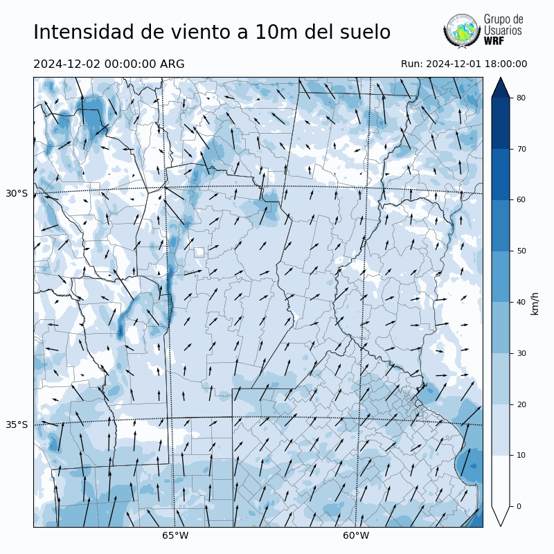 • Intensidad máxima: 20.58 km/h (02/12/2024 03hs.)
