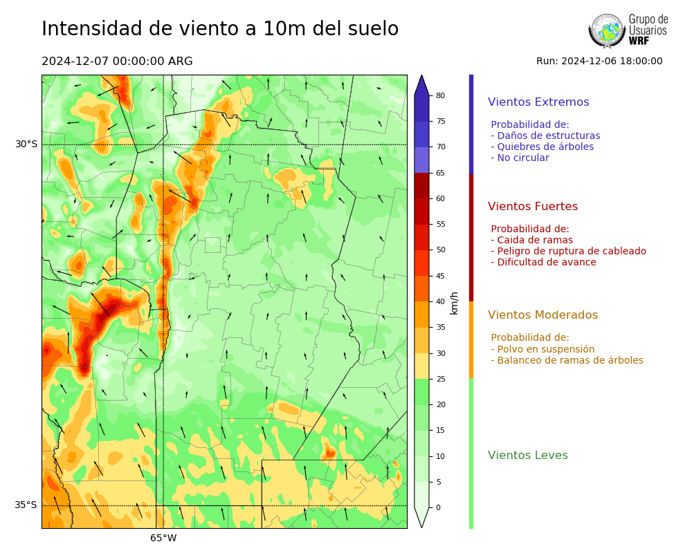 • Intensidad máxima: 32.70 km/h (07/12/2024 05hs.)