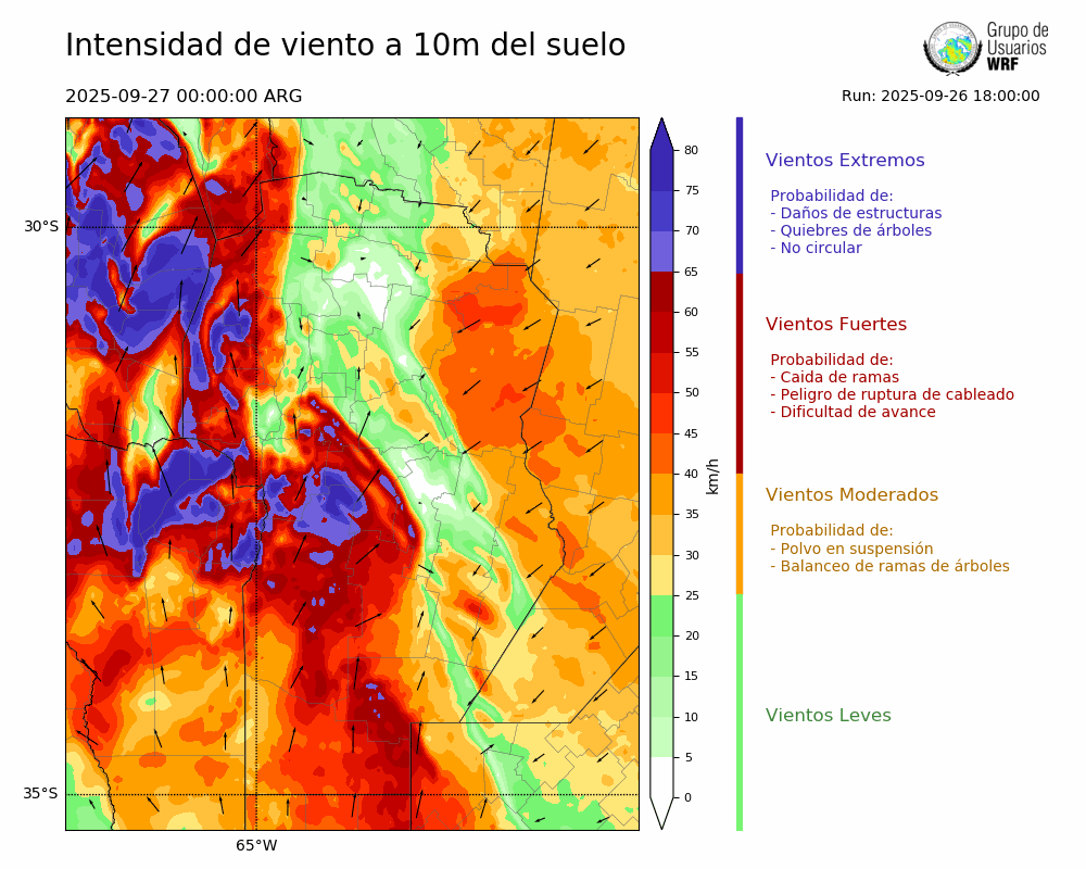 • Intensidad máxima: 65.66 km/h (27/09/2025 01hs.)