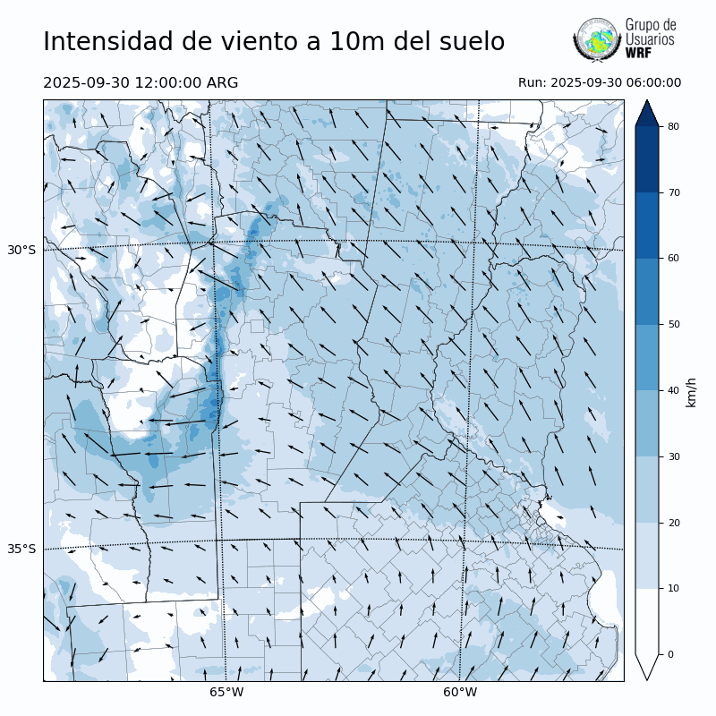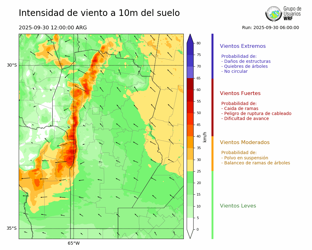 • Intensidad máxima: 14.34 km/h (30/09/2025 14hs.)