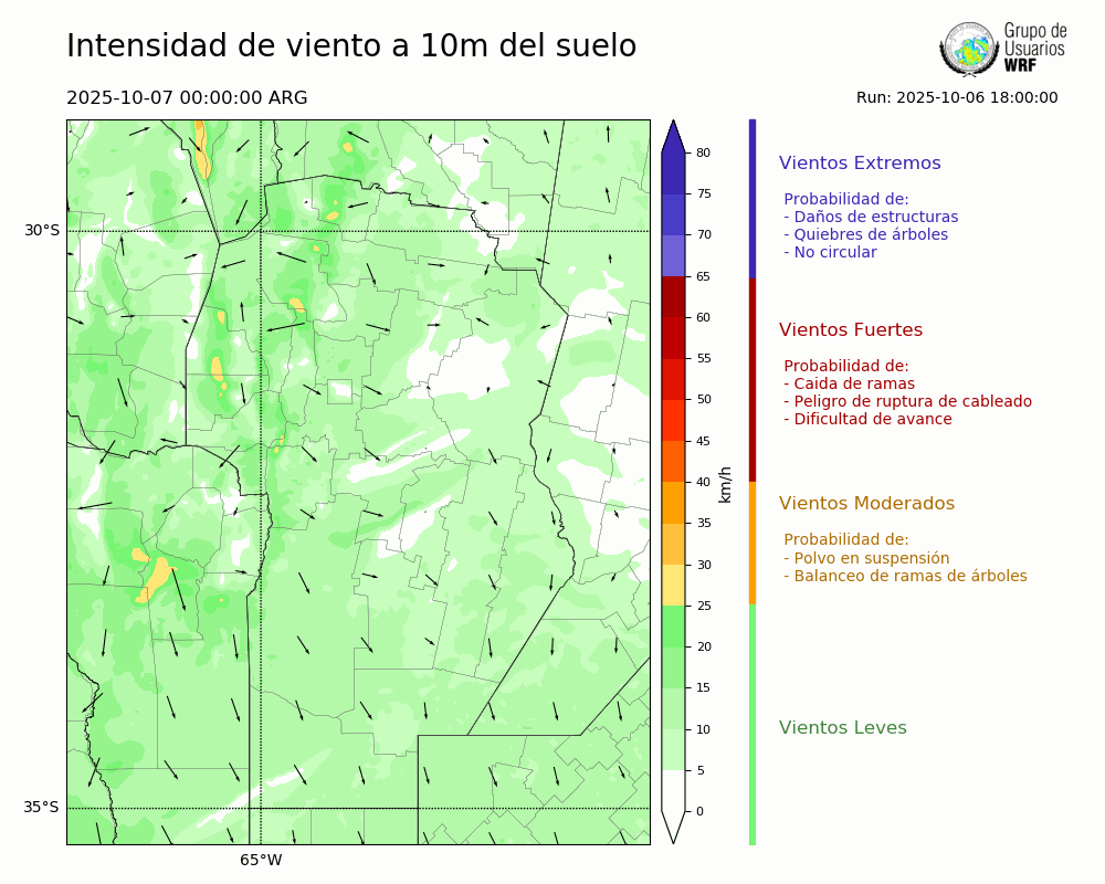 • Intensidad máxima: 12.74 km/h (09/10/2025 04hs.)