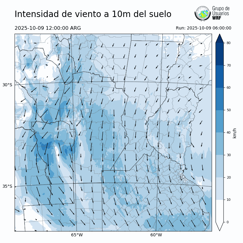 • Intensidad máxima: 30.00 km/h (09/10/2025 17hs.)
