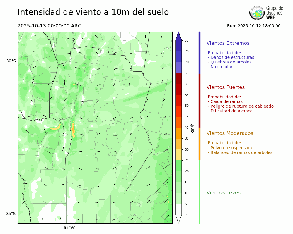• Intensidad máxima: 9.46 km/h (13/10/2025 03hs.)