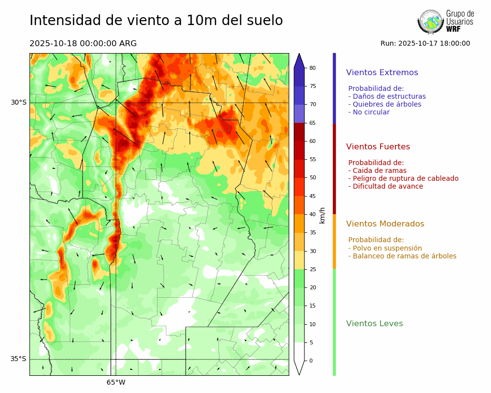 • Intensidad máxima: 10.23 km/h (19/10/2025 01hs.)