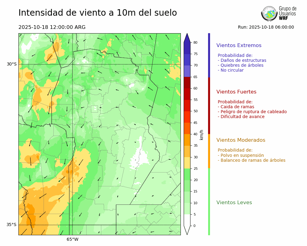 • Intensidad máxima: 17.40 km/h (18/10/2025 18hs.)
