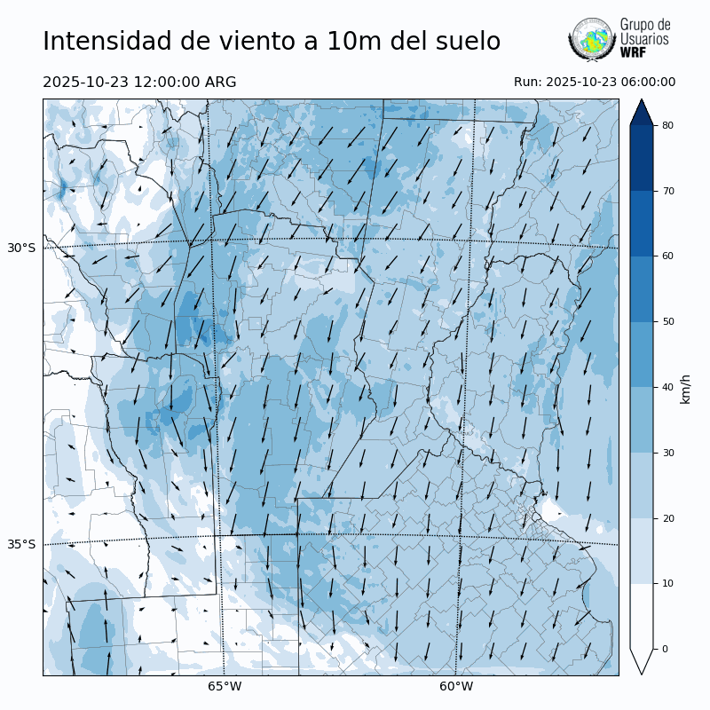• Intensidad máxima: 32.84 km/h (23/10/2025 17hs.)