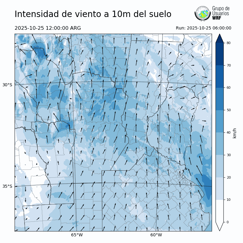 • Intensidad máxima: 25.57 km/h (25/10/2025 13hs.)