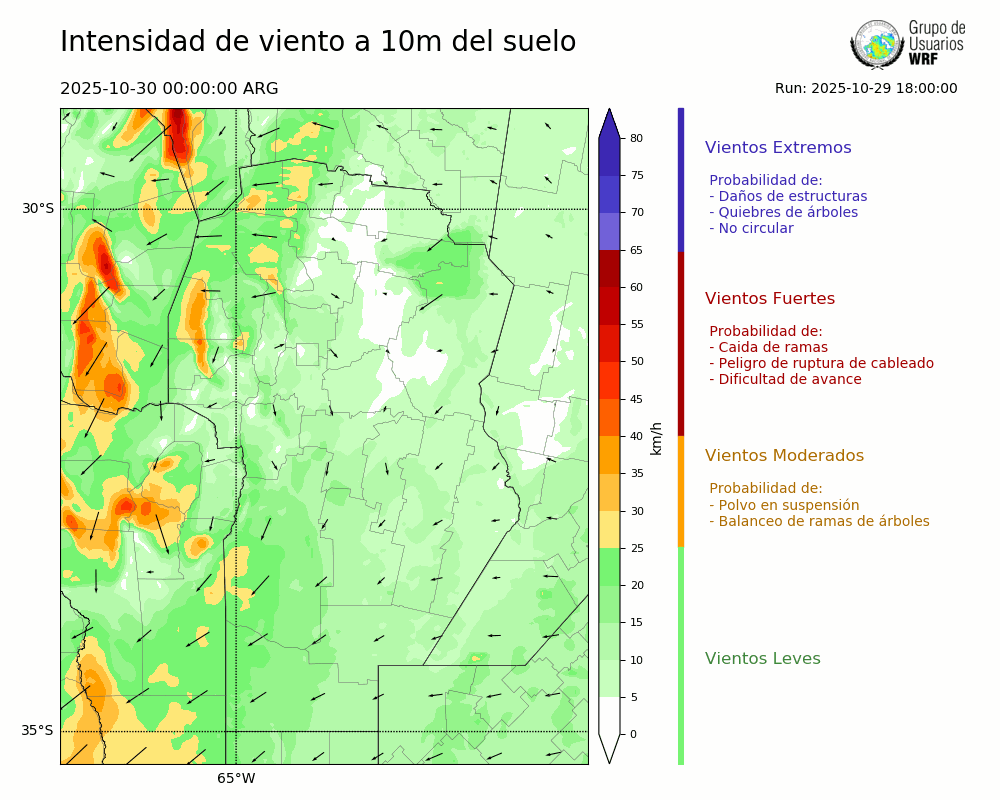 • Intensidad máxima: 10.67 km/h (31/10/2025 05hs.)