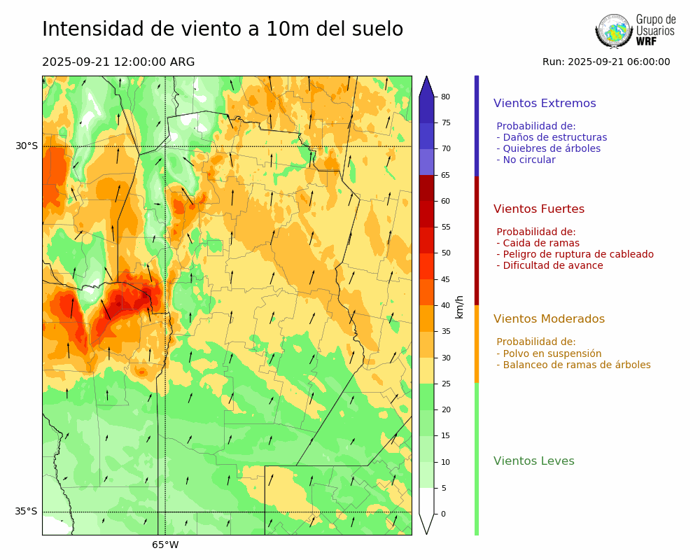 • Intensidad máxima: 23.32 km/h (21/09/2025 17hs.)