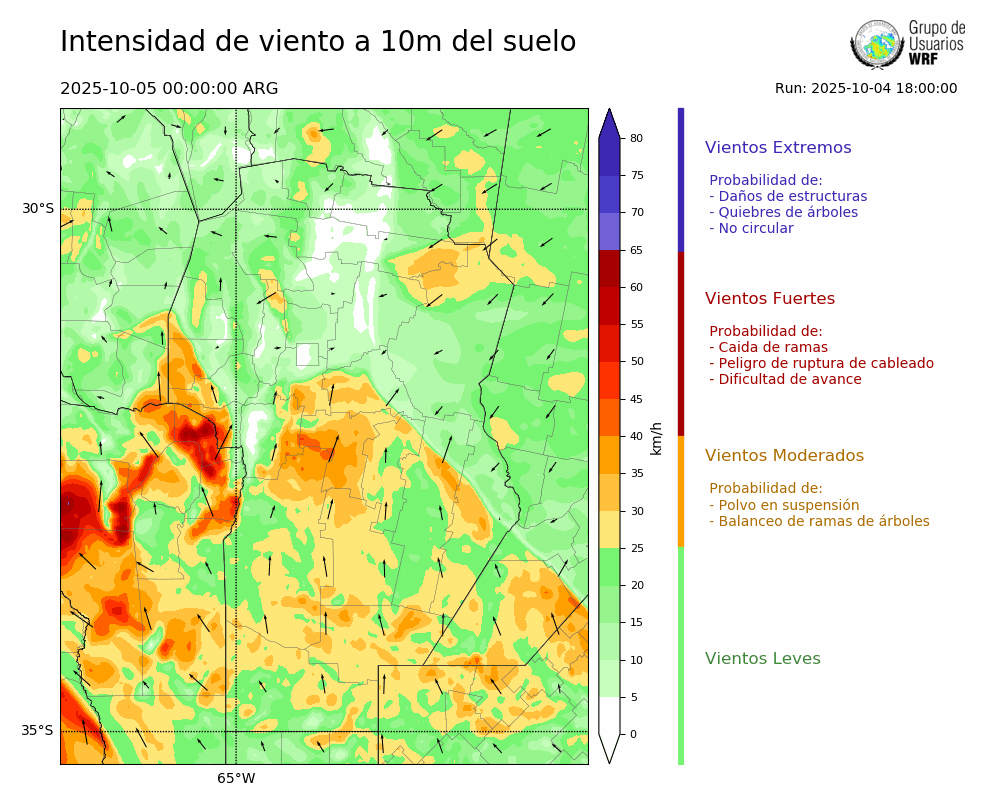 • Intensidad máxima: 36.72 km/h (05/10/2025 04hs.)