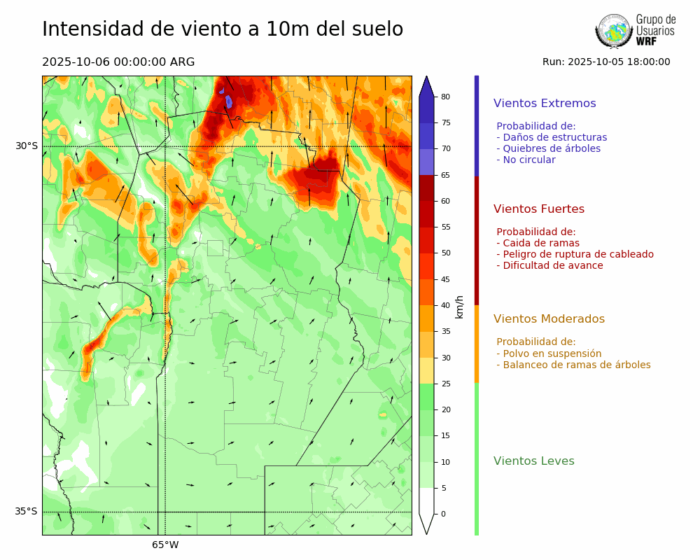 • Intensidad máxima: 11.98 km/h (08/10/2025 06hs.)