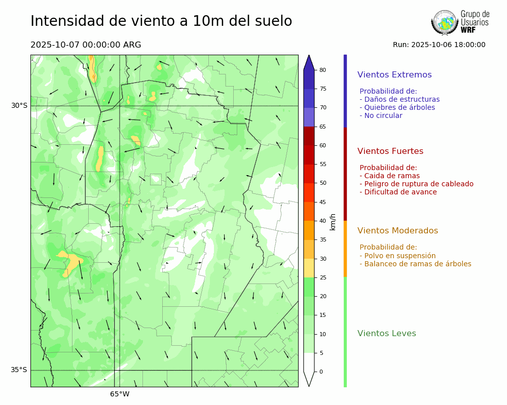 • Intensidad máxima: 21.00 km/h (07/10/2025 11hs.)