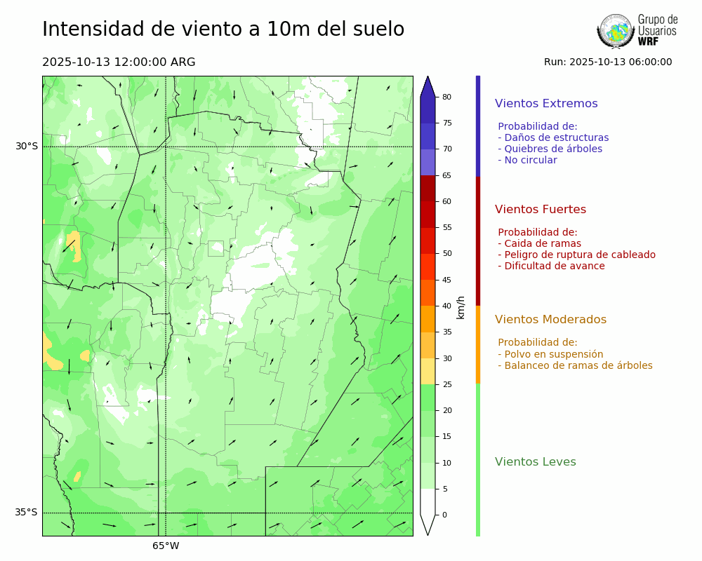 • Intensidad máxima: 15.62 km/h (13/10/2025 23hs.)