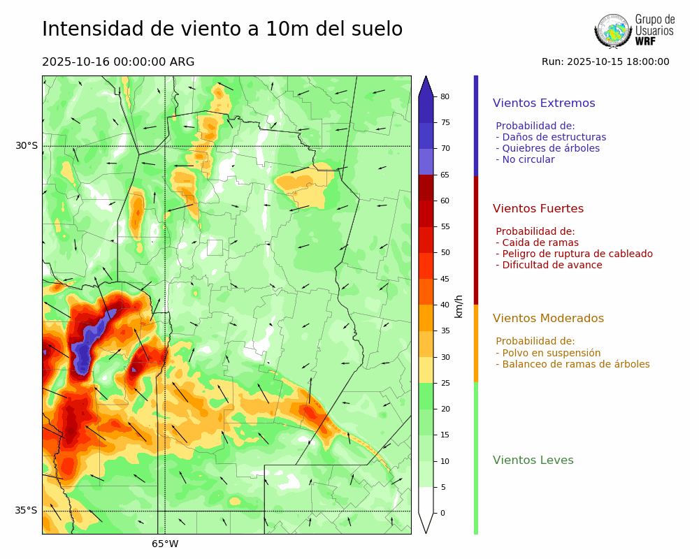 • Intensidad máxima: 22.25 km/h (16/10/2025 03hs.)