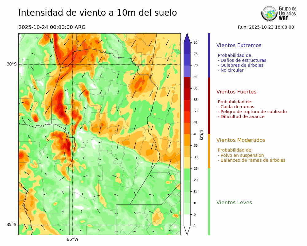 • Intensidad máxima: 17.00 km/h (24/10/2025 23hs.)