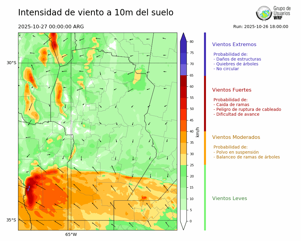 • Intensidad máxima: 28.57 km/h (27/10/2025 05hs.)