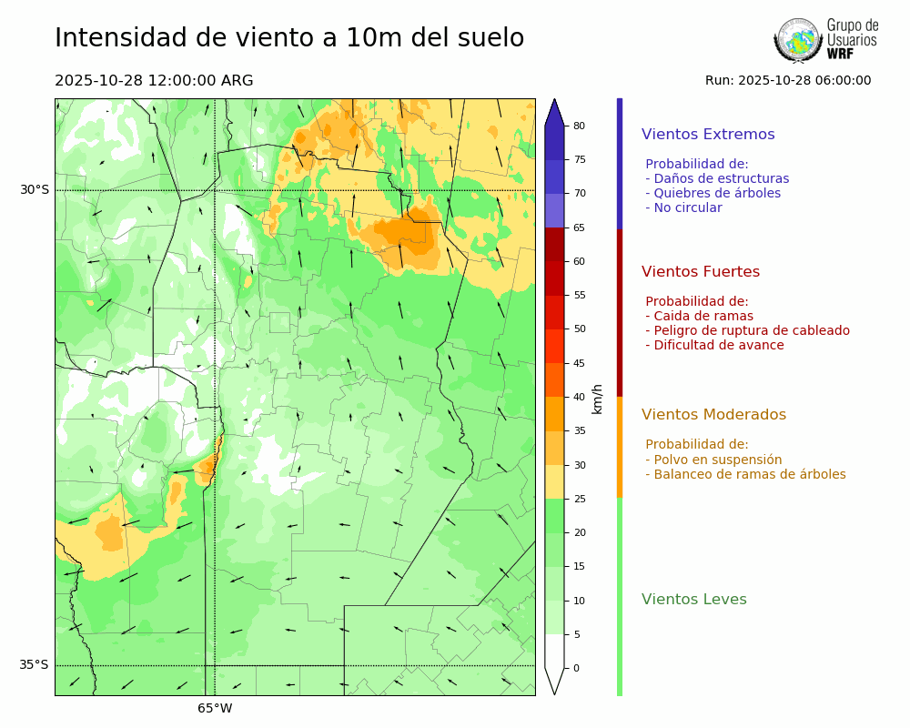 • Intensidad máxima: 10.27 km/h (28/10/2025 13hs.)