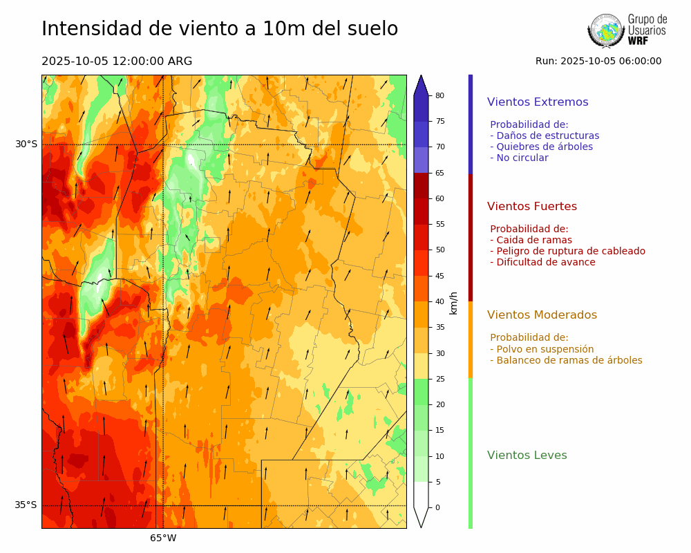 • Intensidad máxima: 40.32 km/h (05/10/2025 19hs.)