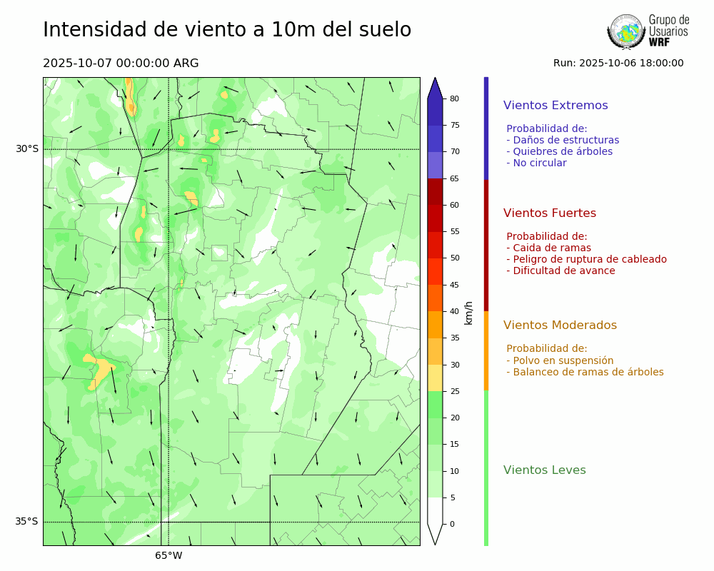 • Intensidad máxima: 20.94 km/h (07/10/2025 10hs.)