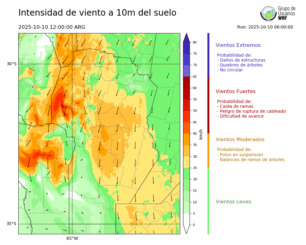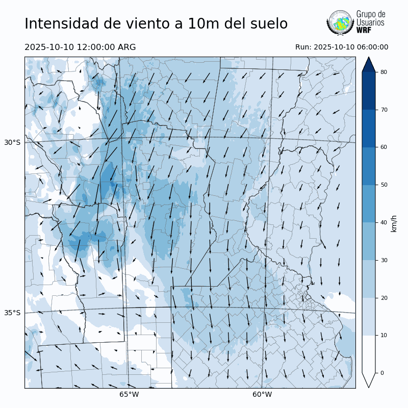 • Intensidad máxima: 30.95 km/h (10/10/2025 17hs.)