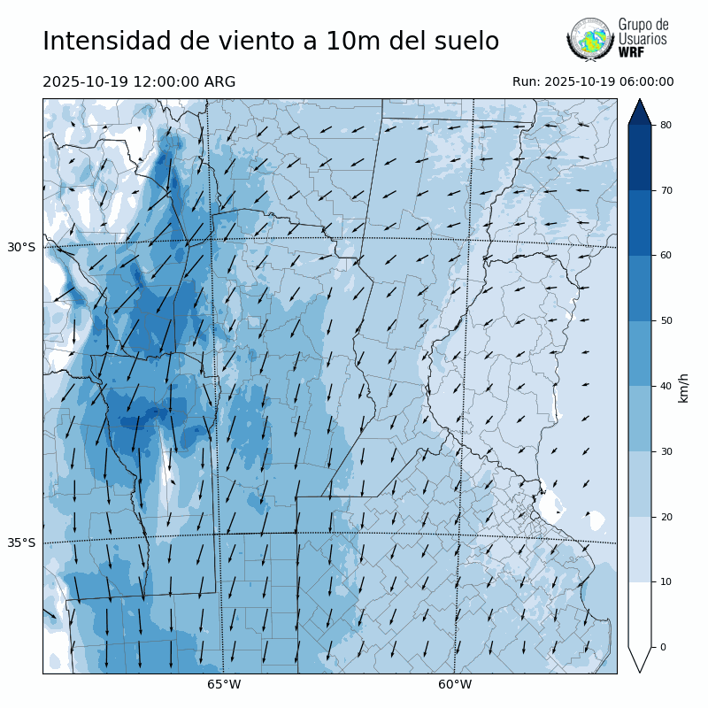 • Intensidad máxima: 31.68 km/h (19/10/2025 12hs.)