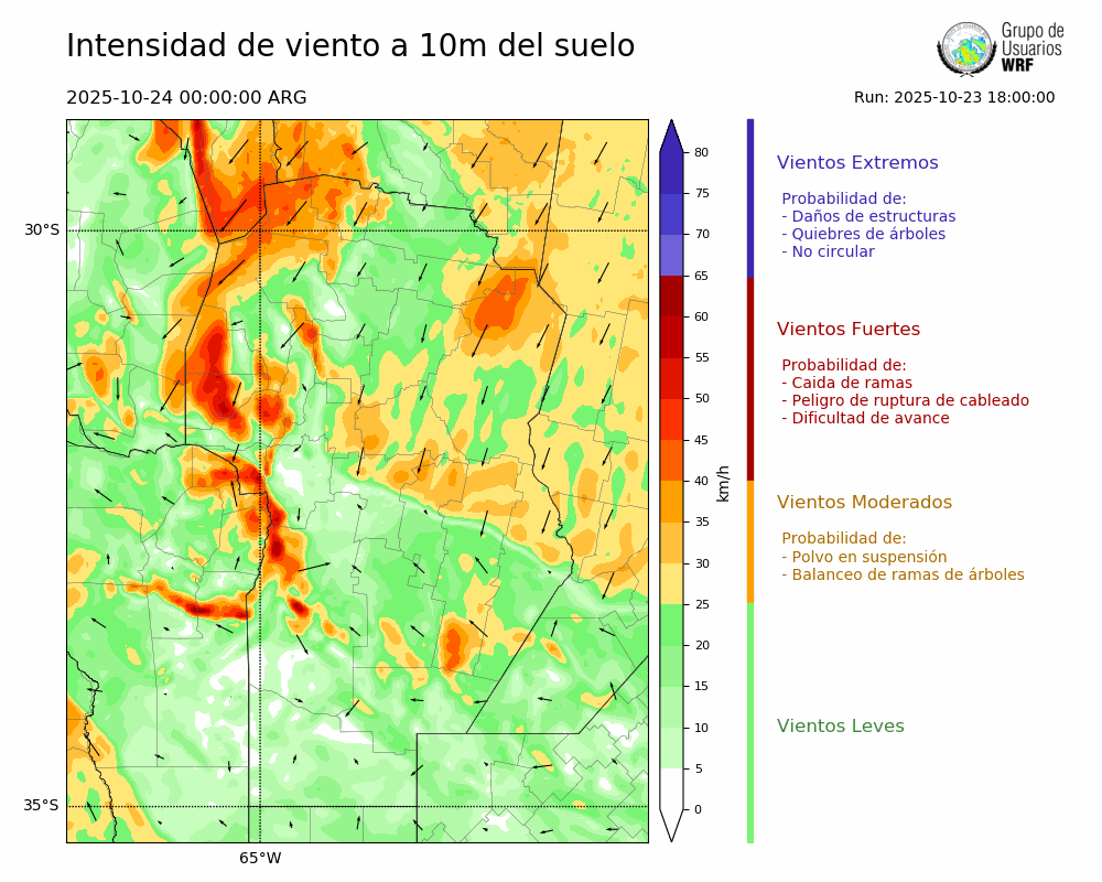 • Intensidad máxima: 19.98 km/h (24/10/2025 02hs.)