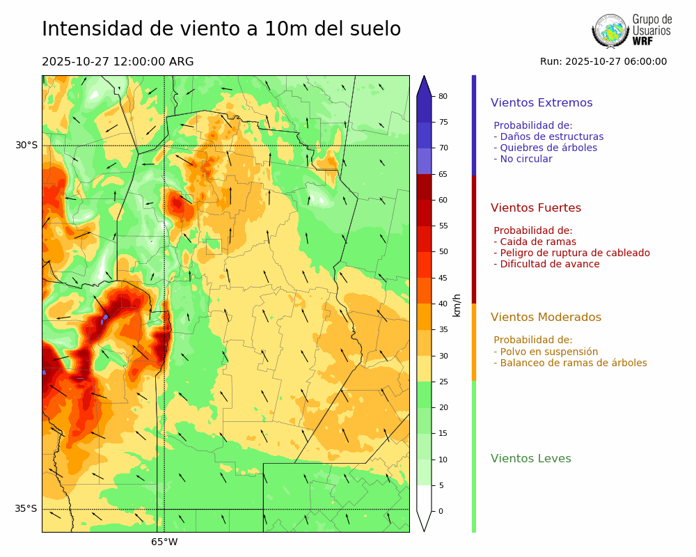• Intensidad máxima: 25.06 km/h (27/10/2025 18hs.)