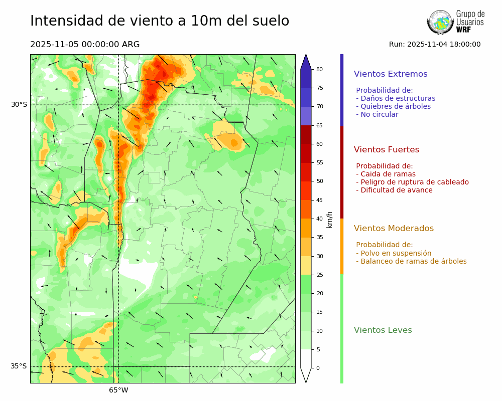 • Intensidad máxima: 11.05 km/h (05/11/2025 04hs.)