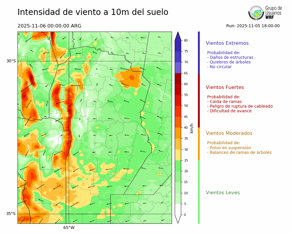 • Intensidad máxima: 26.88 km/h (06/11/2025 17hs.)