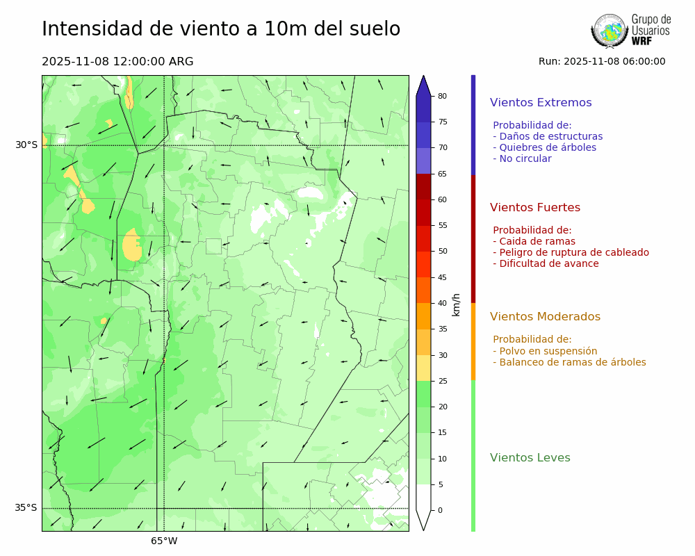 • Intensidad máxima: 2.85 km/h (10/11/2025 06hs.)