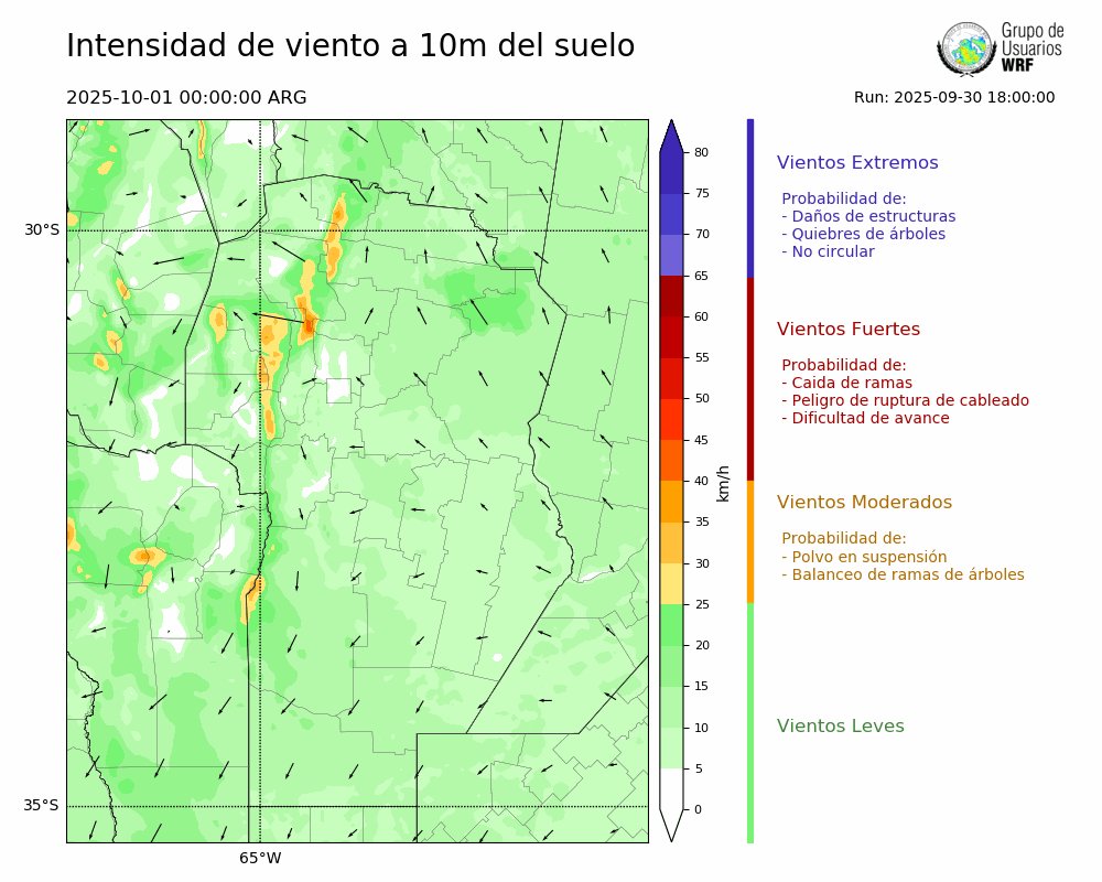• Intensidad máxima: 5.57 km/h (01/10/2025 06hs.)