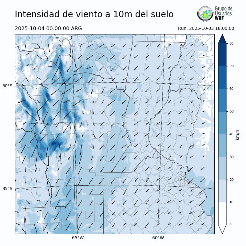 • Intensidad máxima: 24.52 km/h (04/10/2025 11hs.)