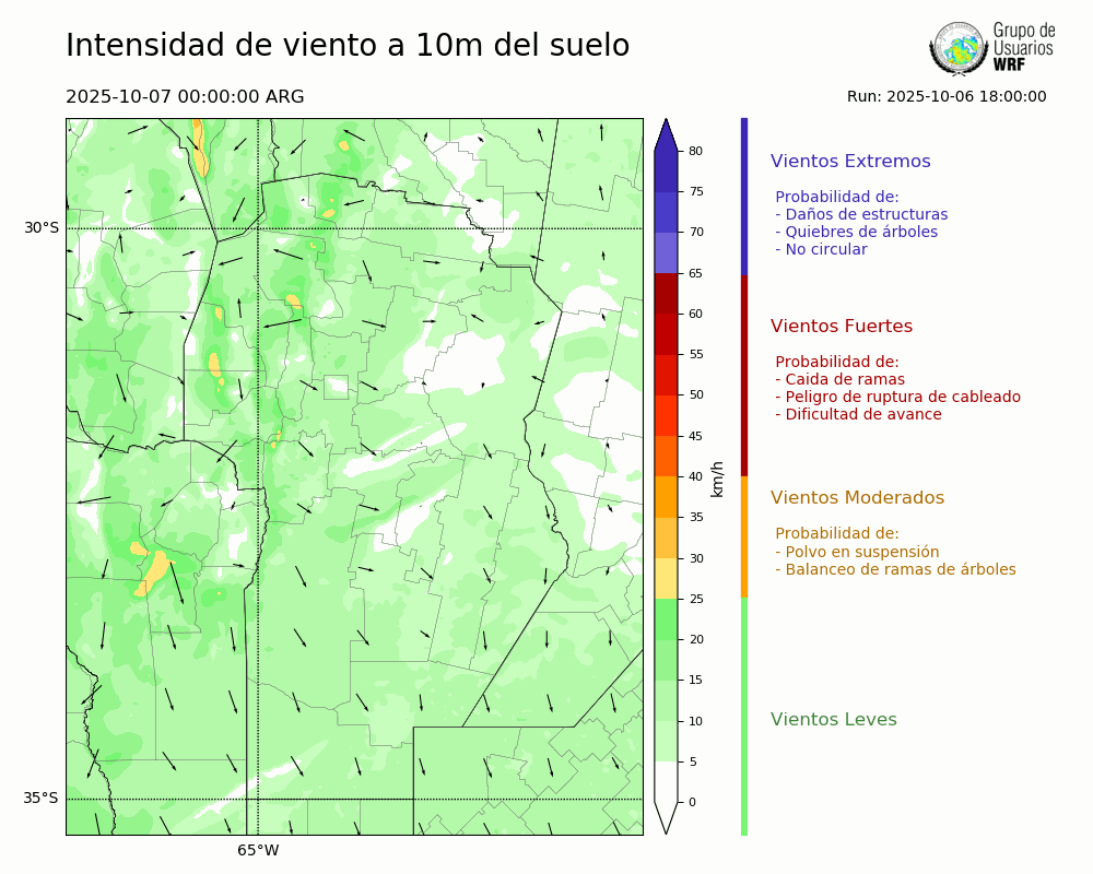 • Intensidad máxima: 21.88 km/h (07/10/2025 11hs.)