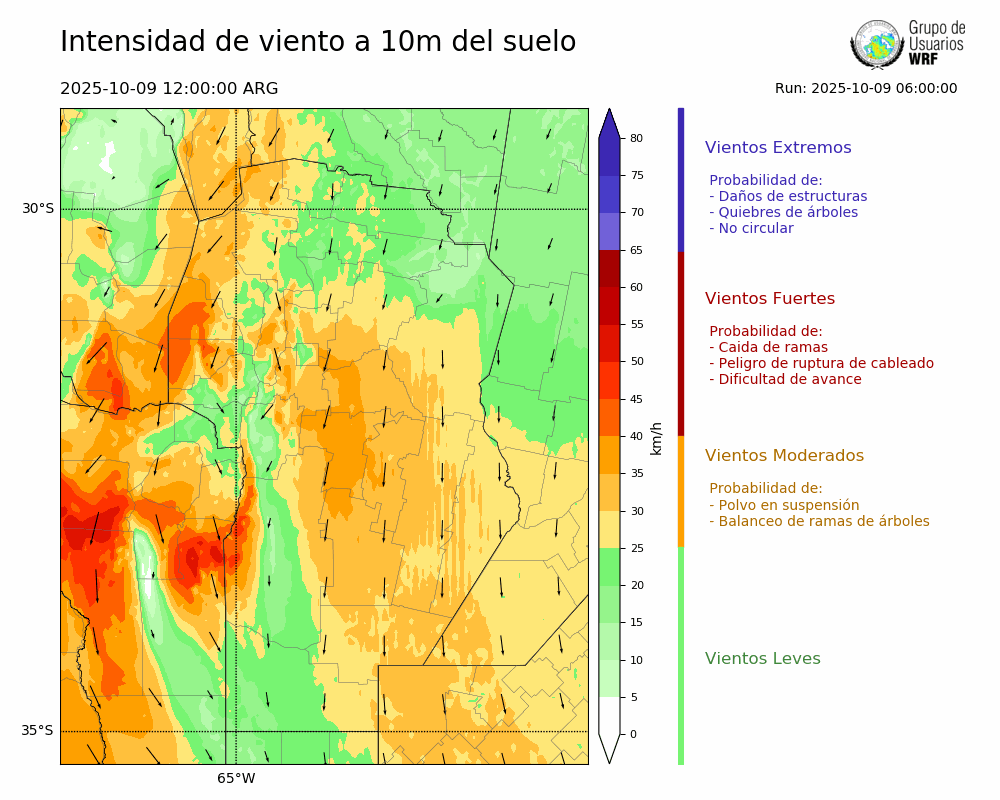 • Intensidad máxima: 30.03 km/h (09/10/2025 17hs.)