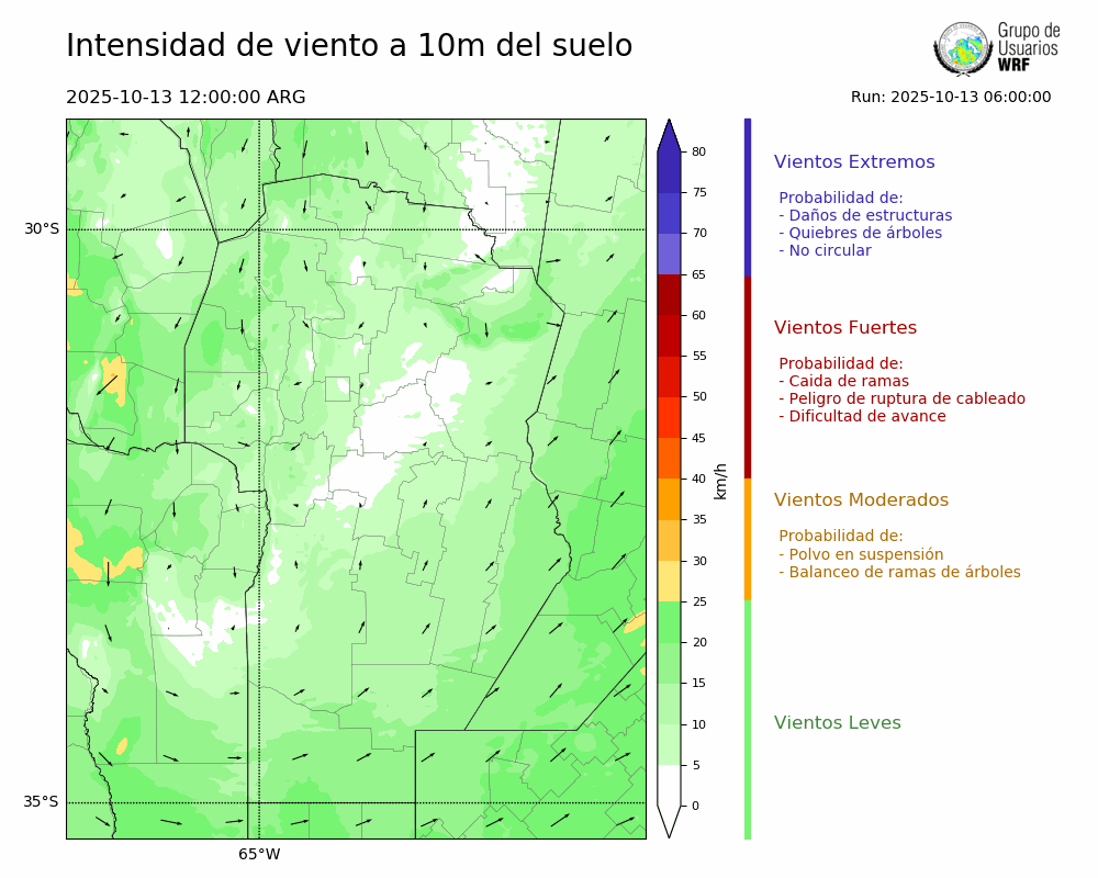 • Intensidad máxima: 10.58 km/h (13/10/2025 22hs.)