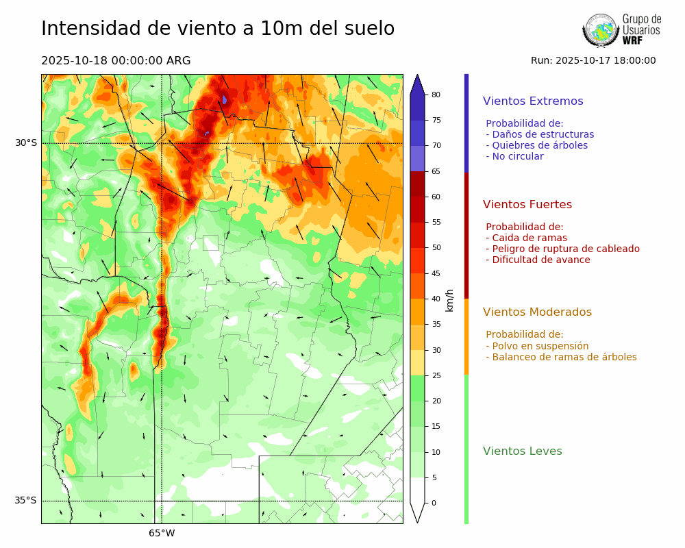 • Intensidad máxima: 12.77 km/h (18/10/2025 11hs.)