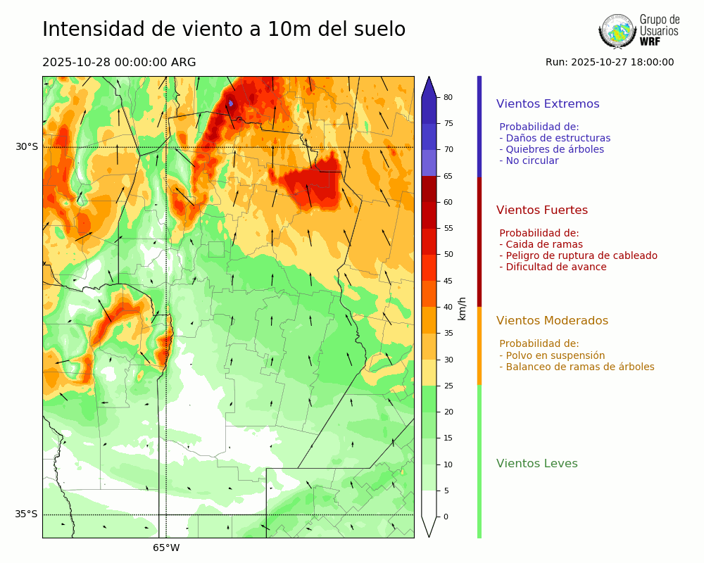• Intensidad máxima: 13.60 km/h (28/10/2025 00hs.)