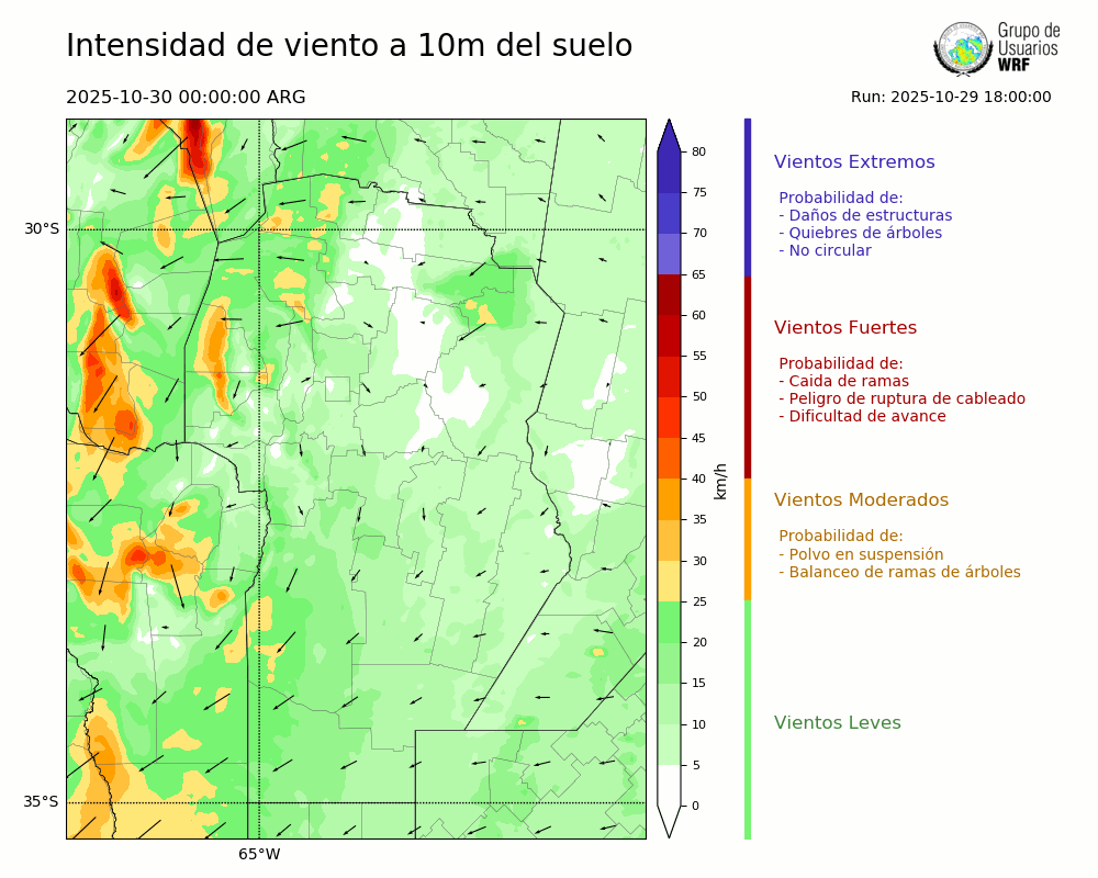 • Intensidad máxima: 18.99 km/h (30/10/2025 10hs.)